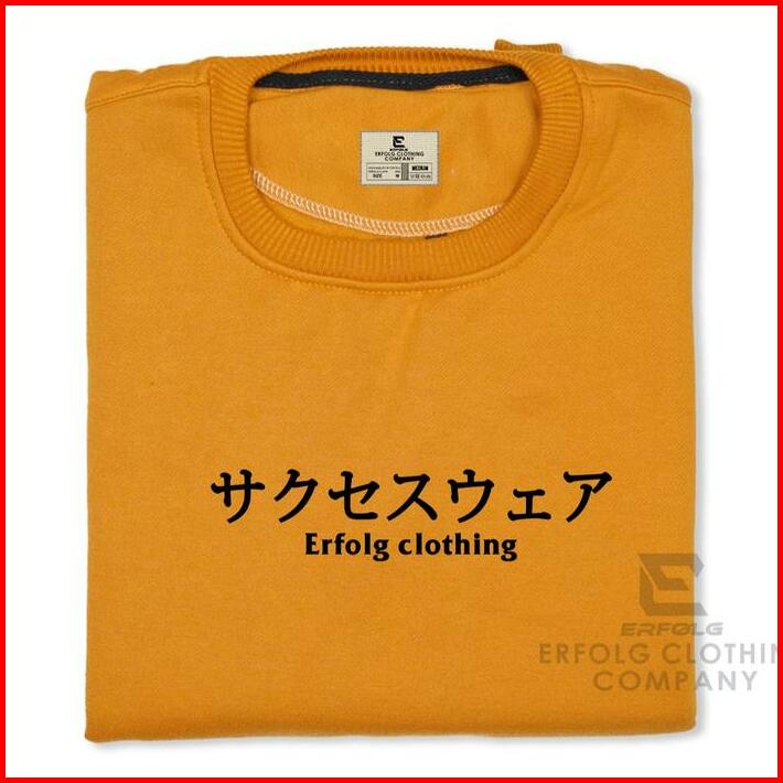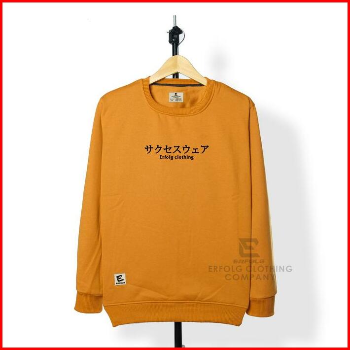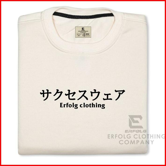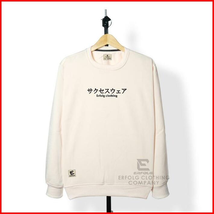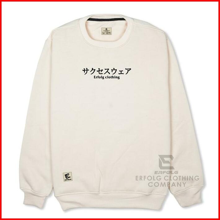 Sweater Crewneck Pria Wanita Basic Sablon Japanese Erfolg Clothing Warna Light Cream Motif Timbul Switer Oblong Distro B