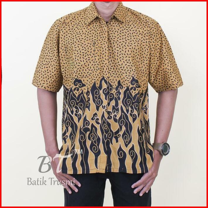 Batik Trusmi Baju Batik Hem Pria Kemeja Pria Lengan Pendek Batik Mega Mendung Kombinasi Beras Tumpah Murah Seragaman Kat