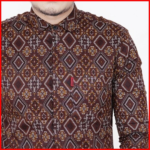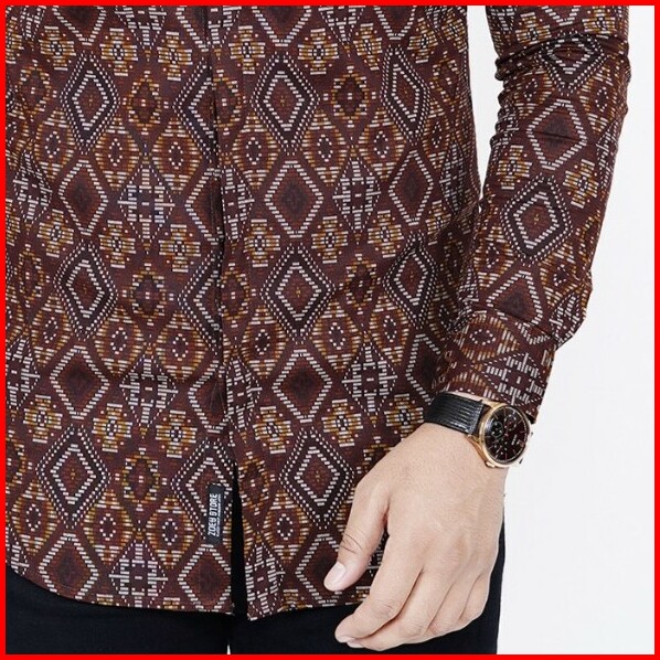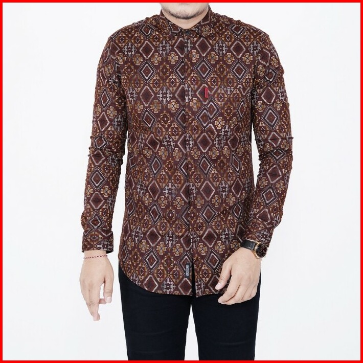 Kemeja Batik Slim Fit Lengan Panjang Cotton Stretch Batik Pria Merah