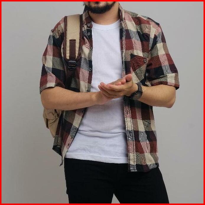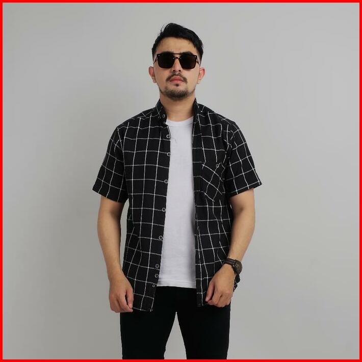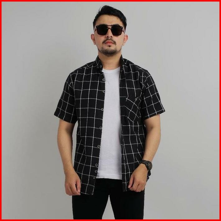 Kemeja Flanel Lengan Pendek Kemeja Unisex Kemeja Flanel Pendek Nyaman Casual