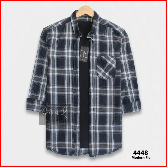 Kemeja Flanel Lengan Panjang Kemeja Pria Kemeja Casual Dark