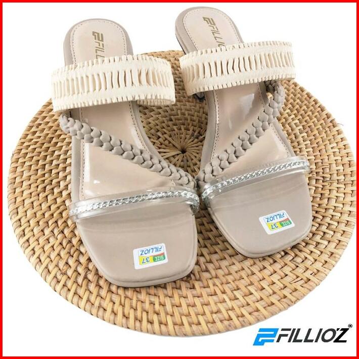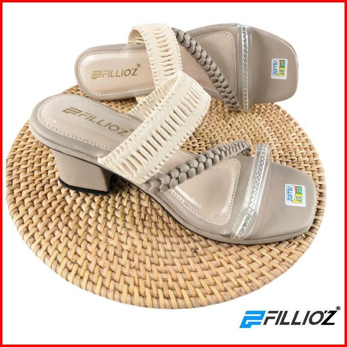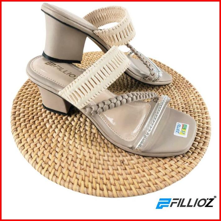 Sandal Heels Wanita 5cm Elegan Fillioz Shanum Krem Original Elastis Kerut