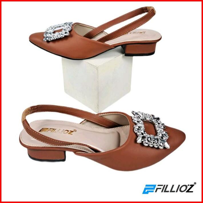 Sandal Mules Wanita Heels 3cm Tali Elastis Sendal Pesta Antilicin Fillioz Hera