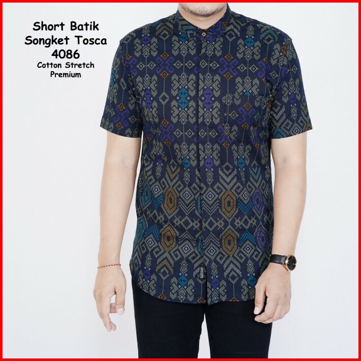 Kemeja Batik Slim Fit Lengan Pendek Cotton Stretch Batik Pria Bpe-02