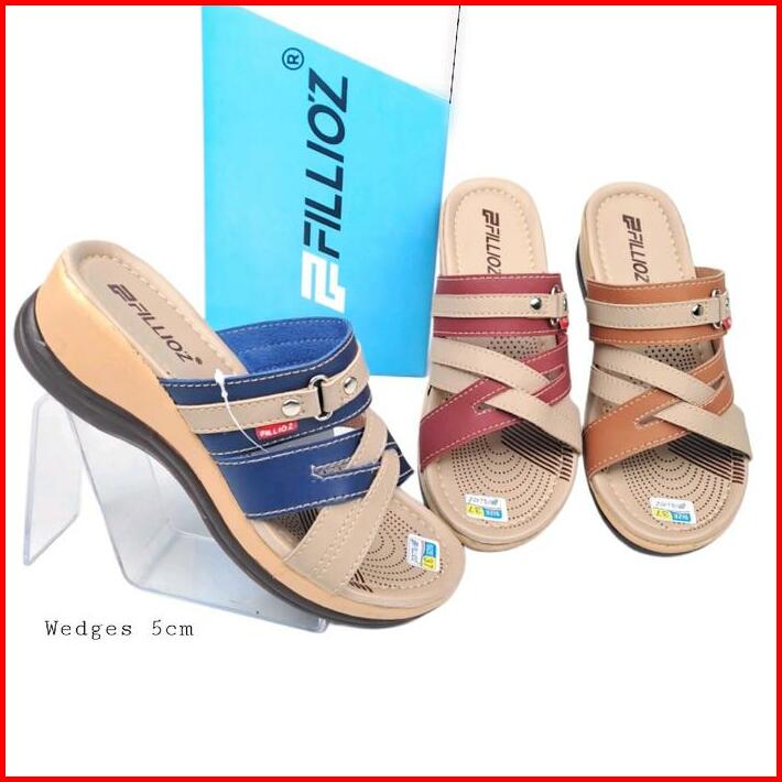 Sendal Wedges Wanita Fillioz 5cm Kombinasi Slp12 Antislip Terlaris