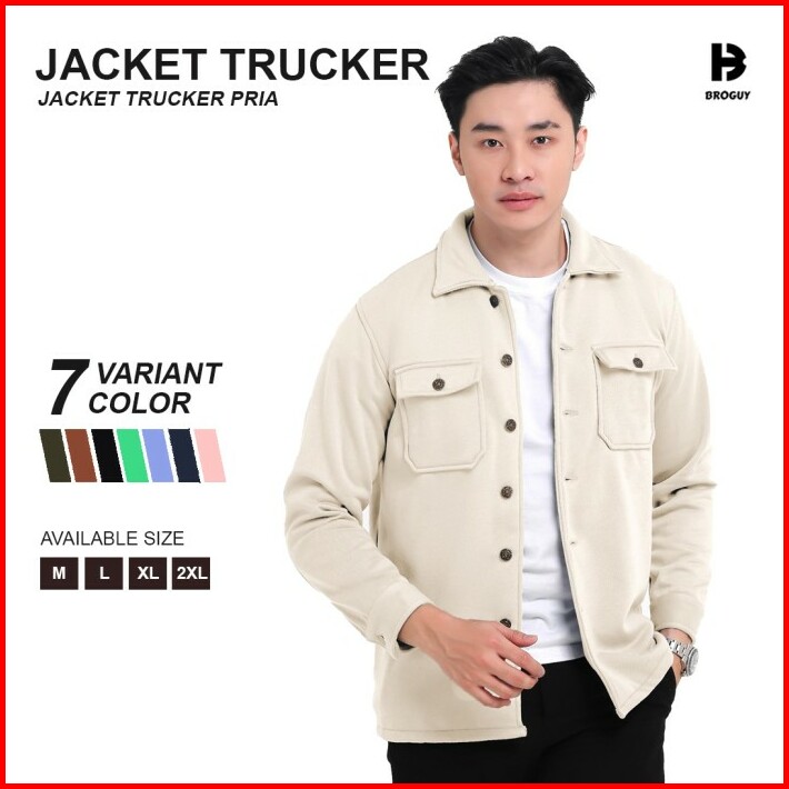 Broguy Jaket Pria Trucker-cream