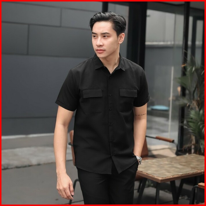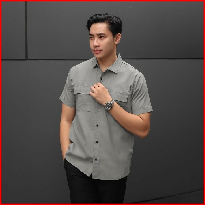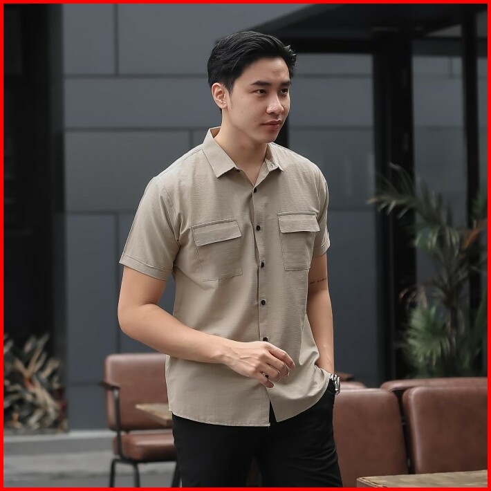 Broguy Kemeja Pria Lengan Pendek Cream Two Pockets