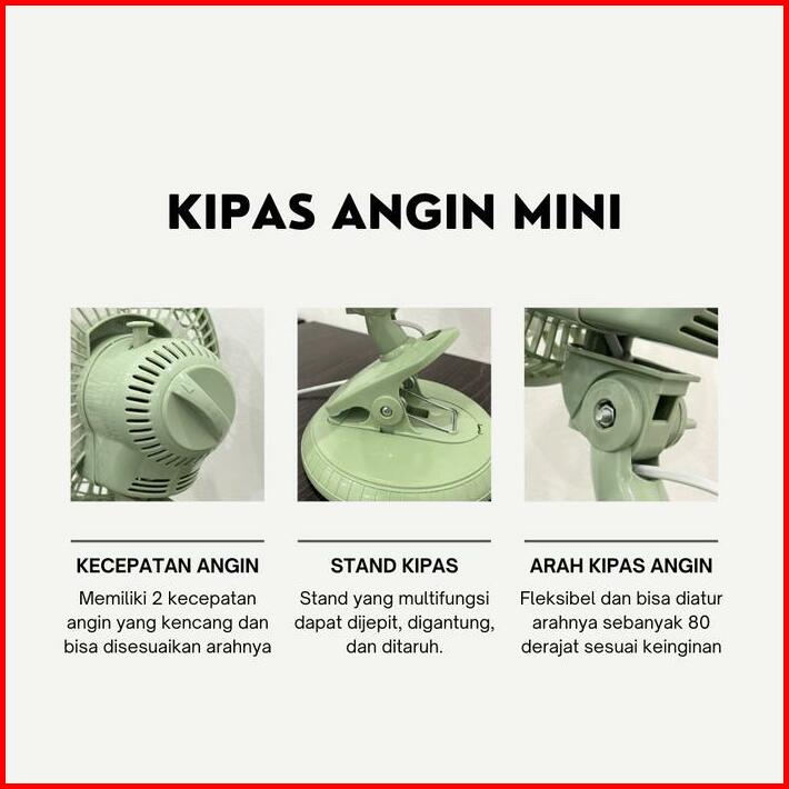 Kipas Angin Multifungsi Jepit Meja Duduk Dinding Tembok Muter Kiri Kanan Ukuran 8inch