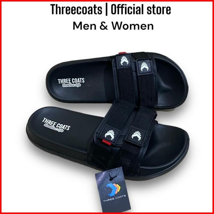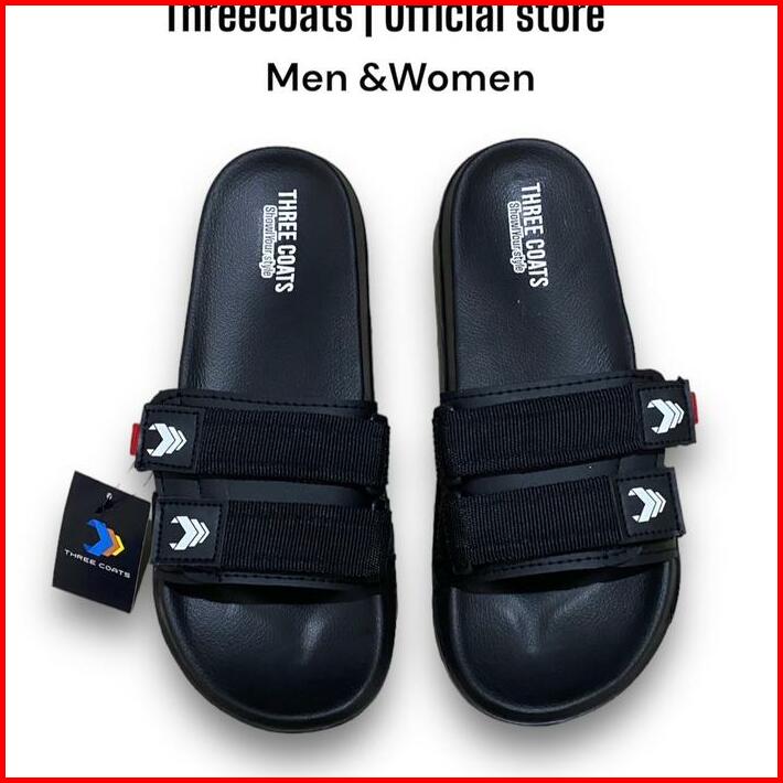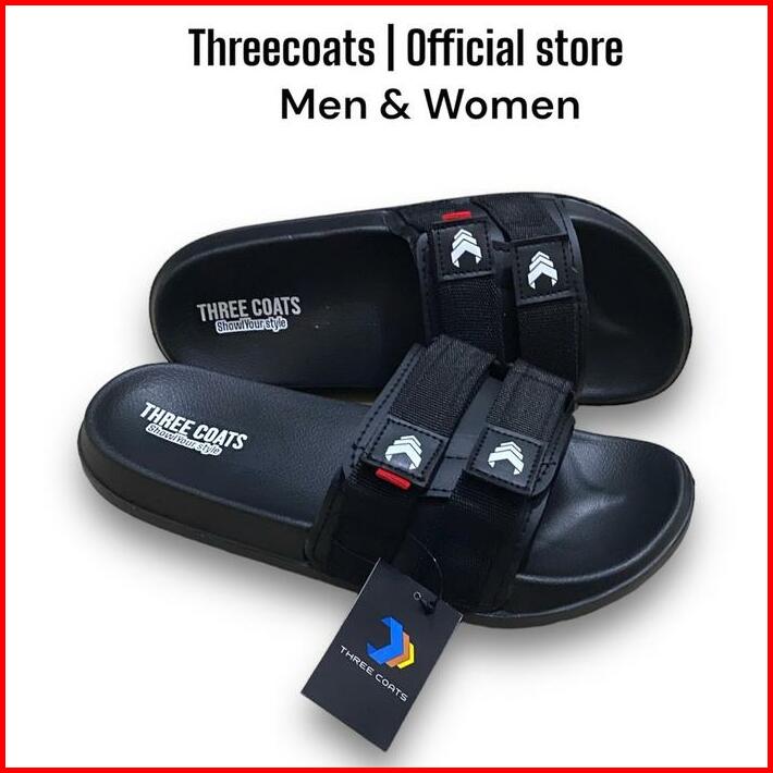 Threecoats Zip Black Sandal Slop Pria Dan Wanita