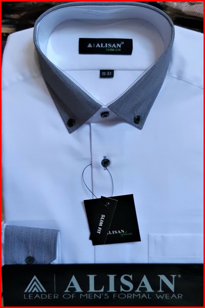 Alisan Kemeja Dobby Putih Lengan Panjang