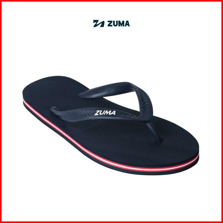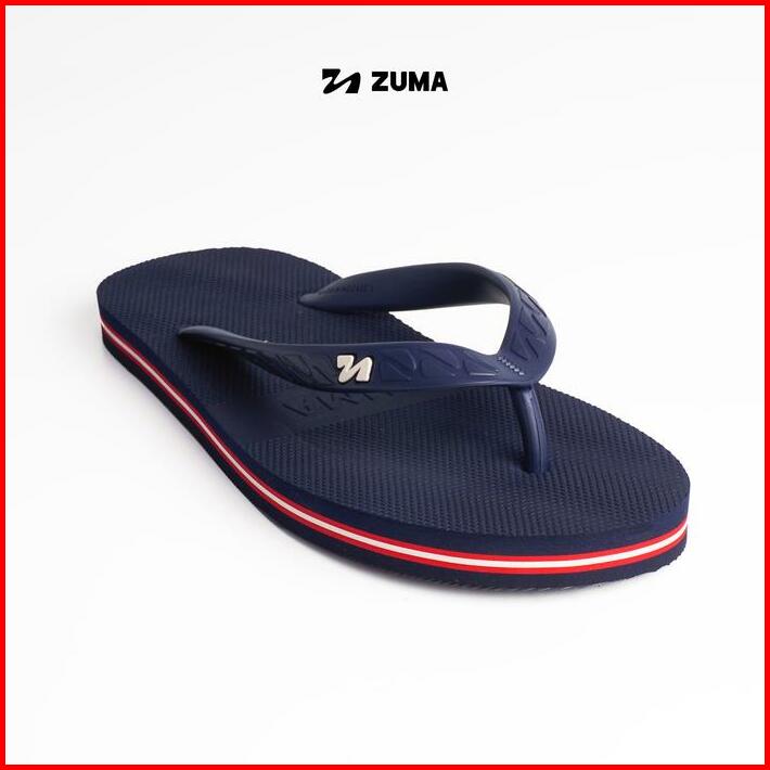 Zuma Men Stripe 8 Navy Red Sandal Jepit Pria Karet Polos Biru Tua Merah