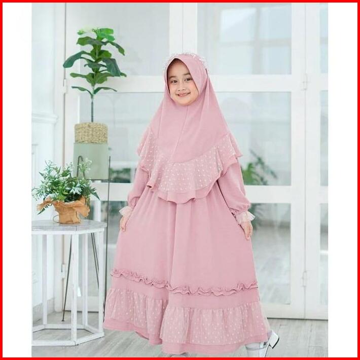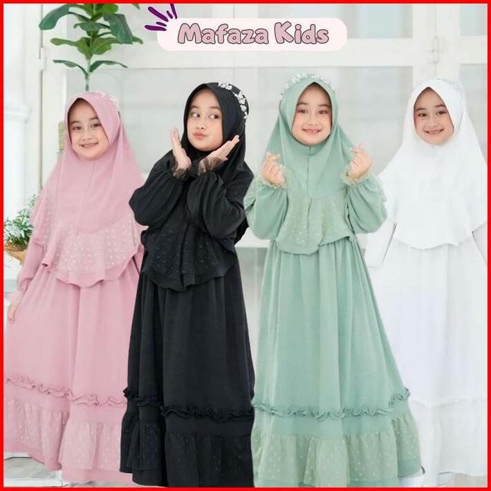 Promo Gamis Anak Set Kerudung Crinkle Premium Mix Tille Brokat Mewah Gamis Putih Gamis Manasik Anak Perempuan Remaja Tan