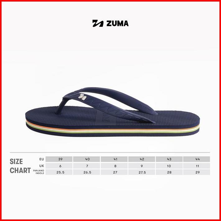 Zuma Men Stripe 2 Orange Green Sandal Jepit Pria Karet Polos Biru Navy Oranye Hijau