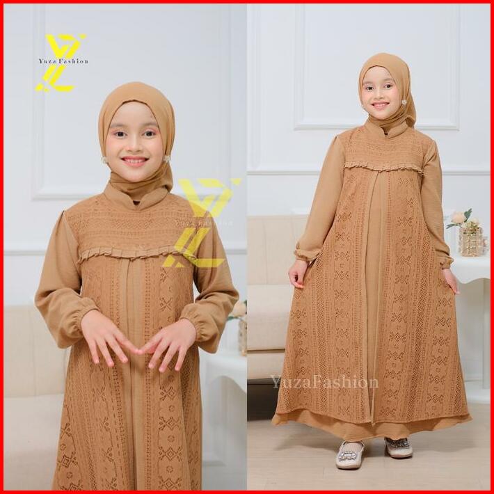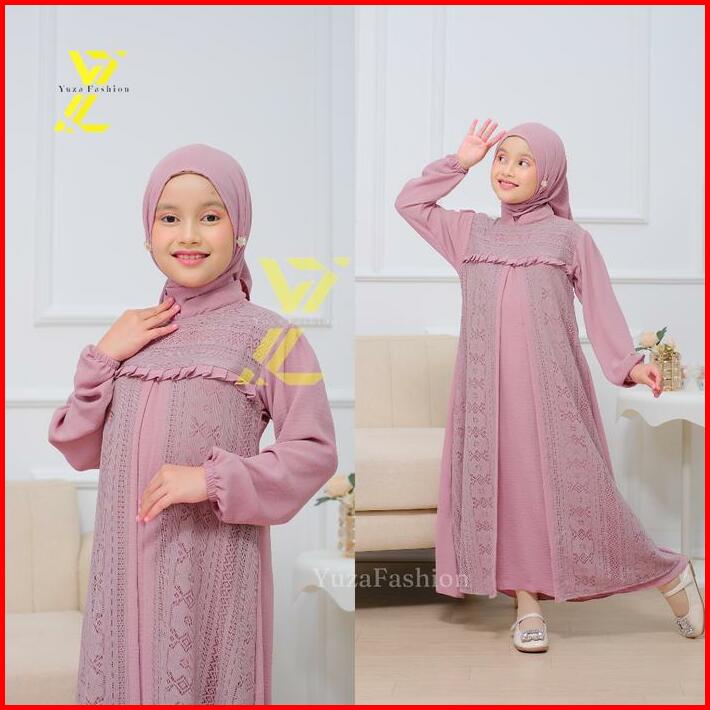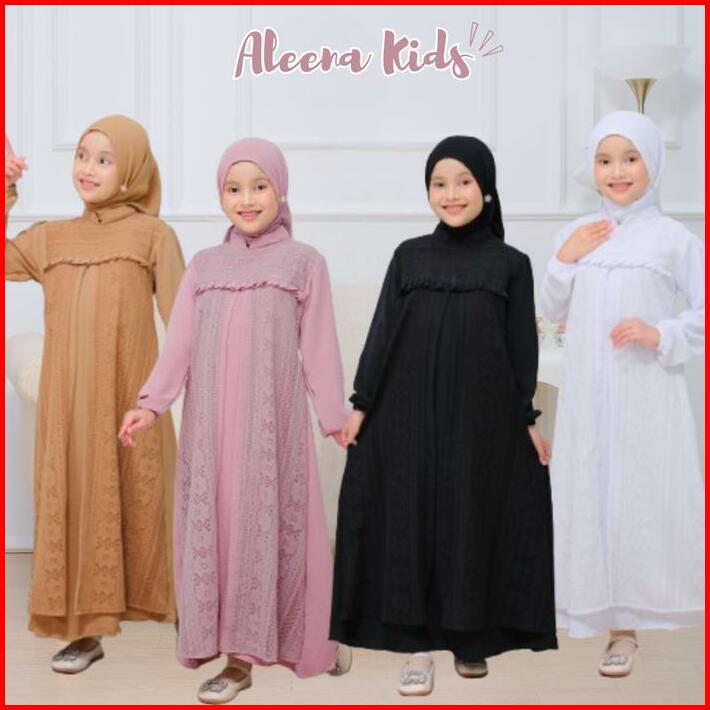 Gamis Anak Aleena Kids Gamis Crinkle Airflow Mix Brukat Set Jilbab Gamis Brokat Malika Mewah Kekinian Dress Pesta Gamis