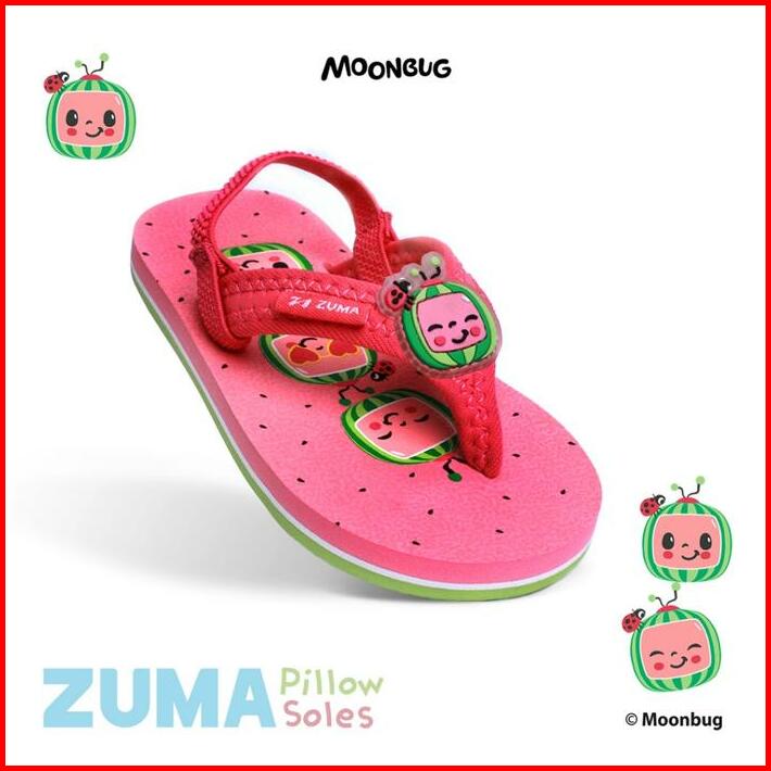 Zuma Baby Cocomelon 2 Red Green Sandal Jepit Bayi Karet Tali Belakang Merah Hijau