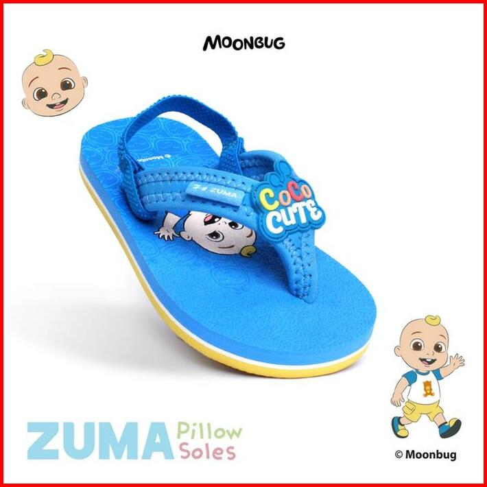 Zuma Baby Cocomelon 3 Blue Yellow Sandal Jepit Bayi Karet Tali Belakang Biru Kuning