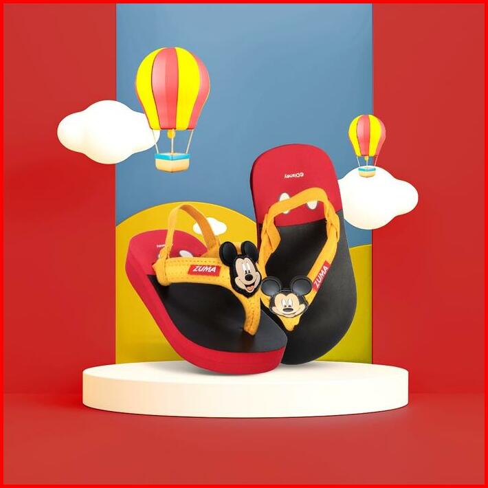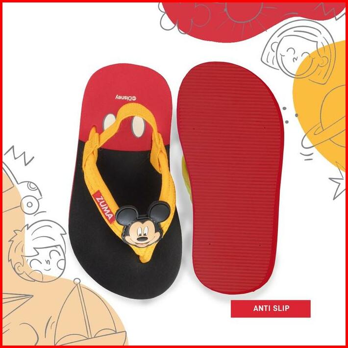 Zuma Baby X Disney Mickey Black Red Sandal Jepit Bayi Karet Tali Belakang Hitam Merah