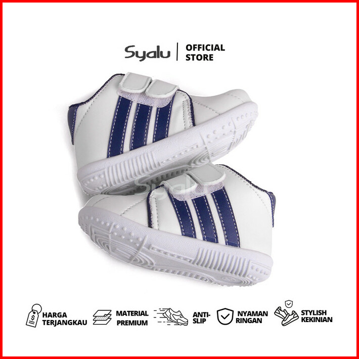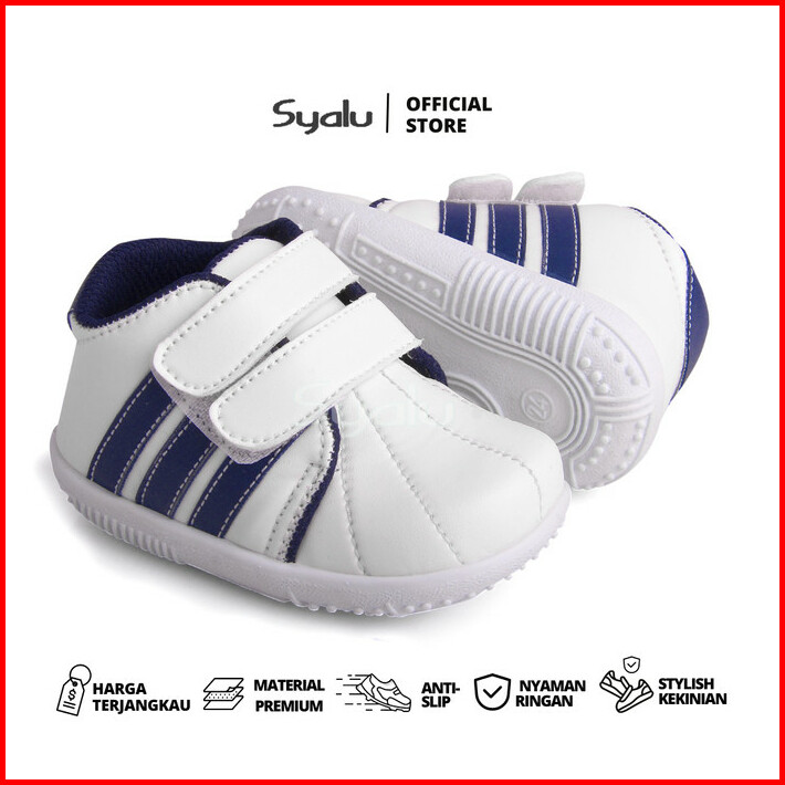 Sepatu Anak Cowok Perekat Umur 1 2 Tahun Bunyi Cit Strip Navy
