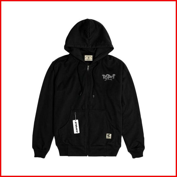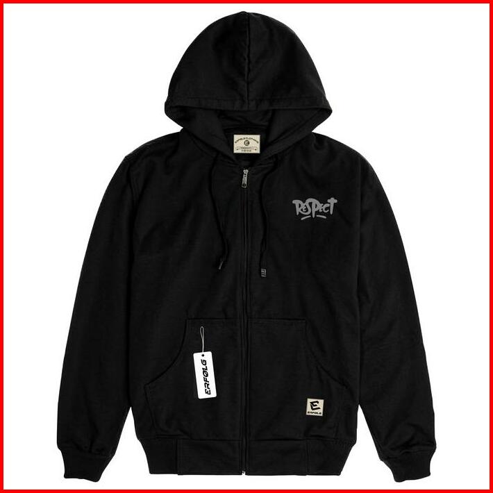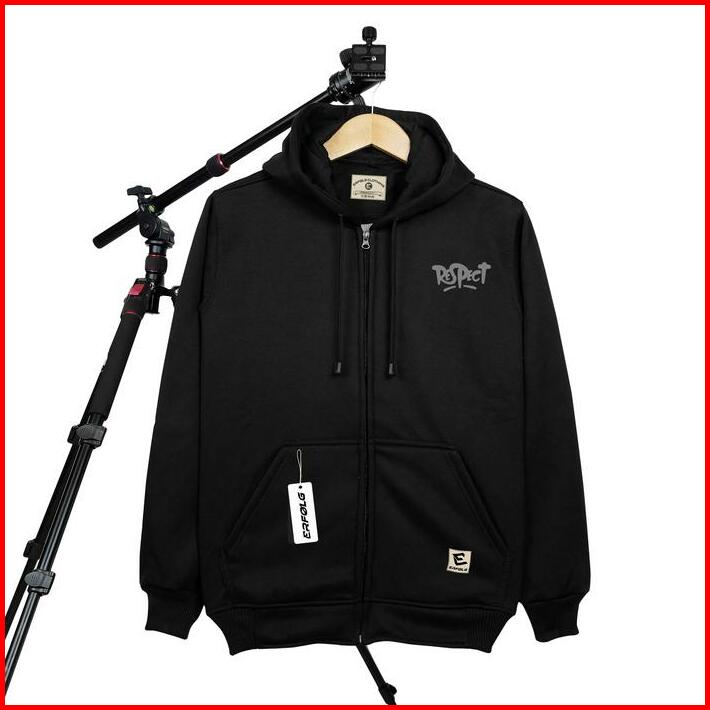 Erfolg Sweater Hoodie Zipper Pria Motif Respect Grey Hodie Pullover Fleece Hitam Tebal Jaket Switer Jumper Resleting Cow