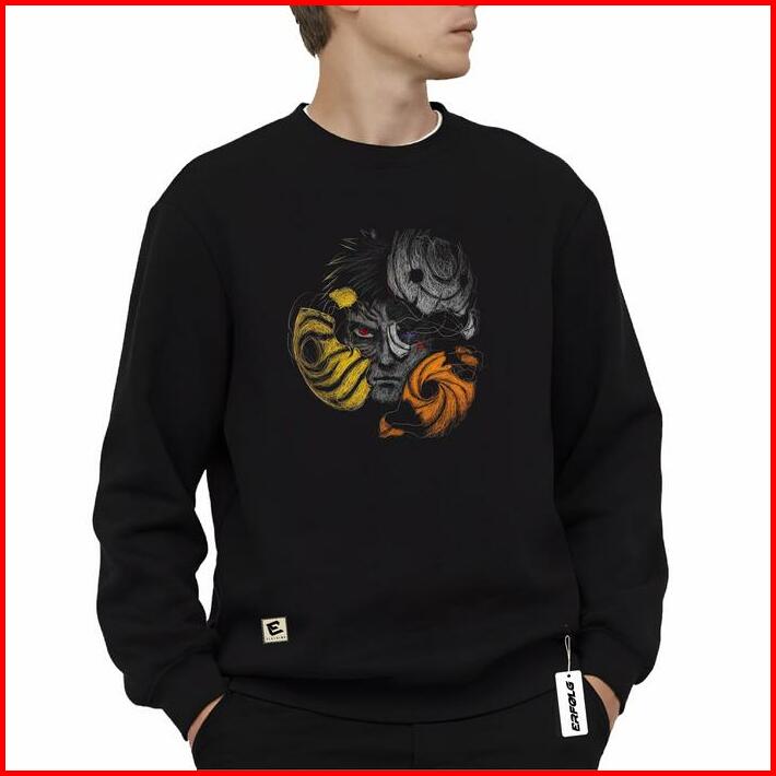 Erfolg Sweater Crewneck Pria Uchiha Obito Anime Lengan Panjang Sweatshirt Jumper Hitam Cowok Aesthetick Switer Oblong Di