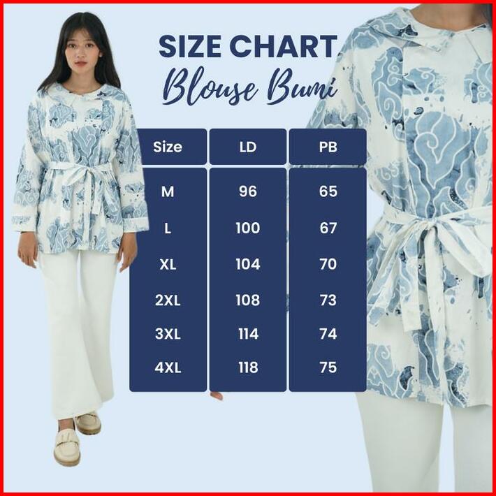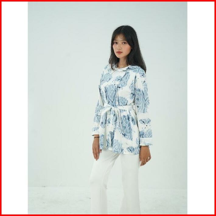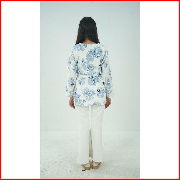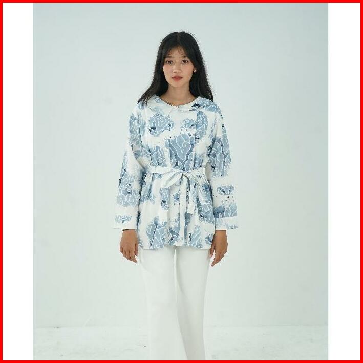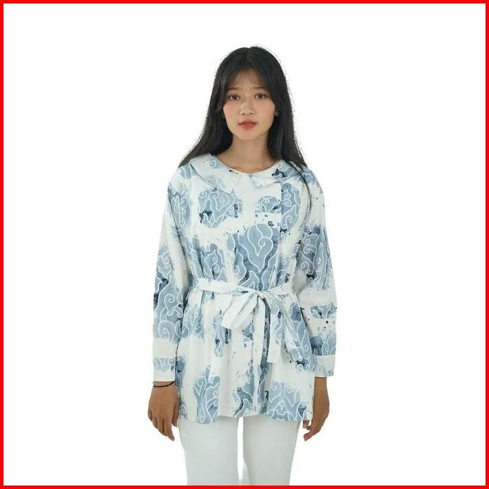 Batik Trusmi Atasan Wanita Blouse Batik Motif Mega Mendung Bumi Obi Mop Biru Baju Kain Katun Nyaman