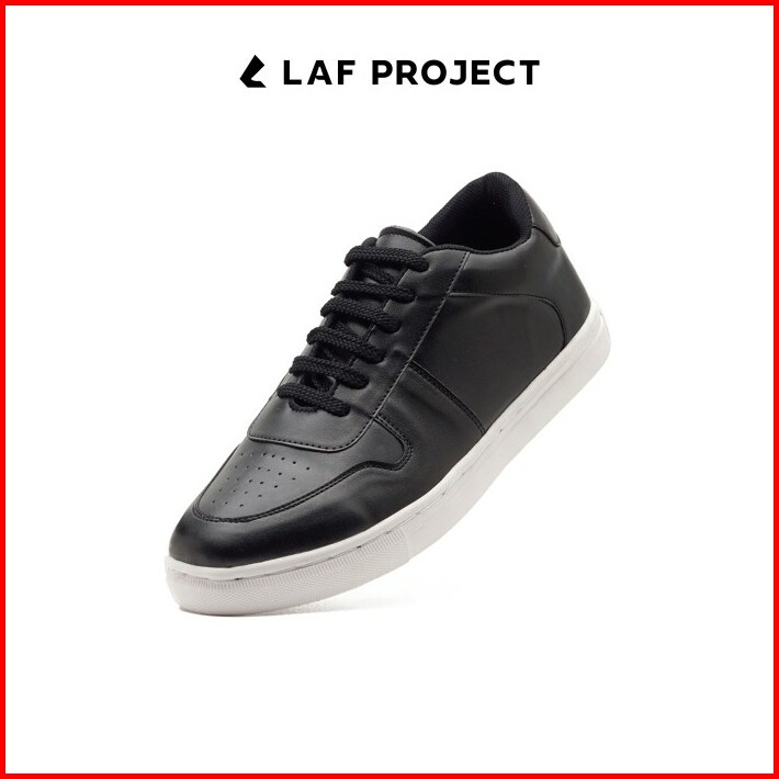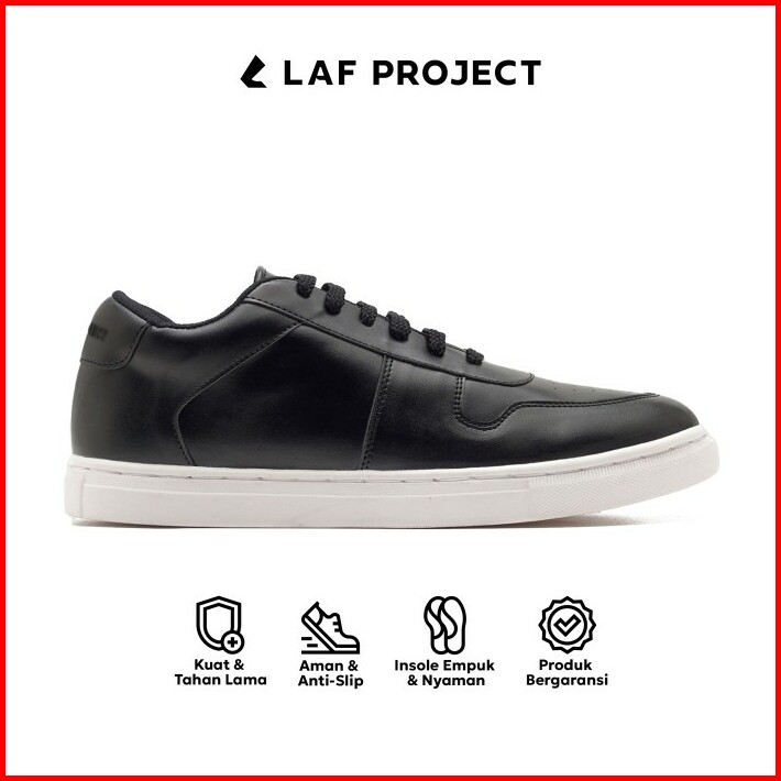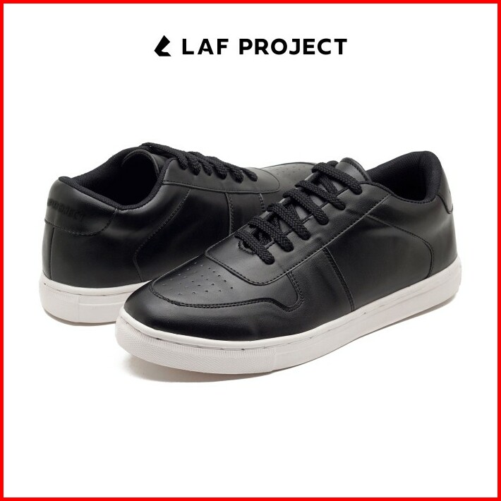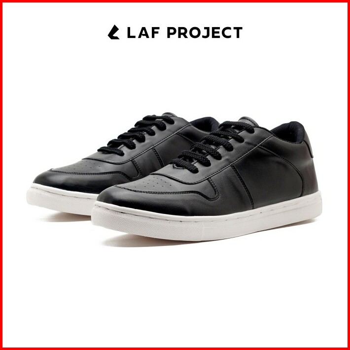 Sepatu Sneakers Pria Casual Snekers Hitam Putih Black Polos Shoes