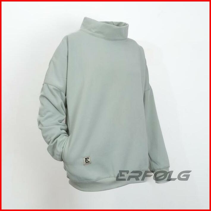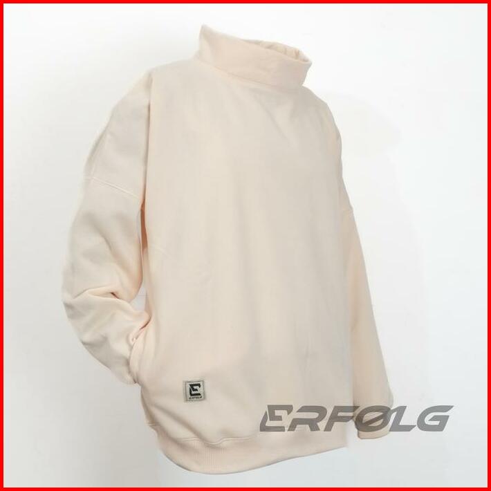 Erfolg Crewneck Pria Oversize Tebal Kerah Tinggi Lengan Panjang Elegan Sweater Turtleneck Polos Hitam Ight Cream Hijau M