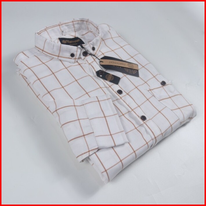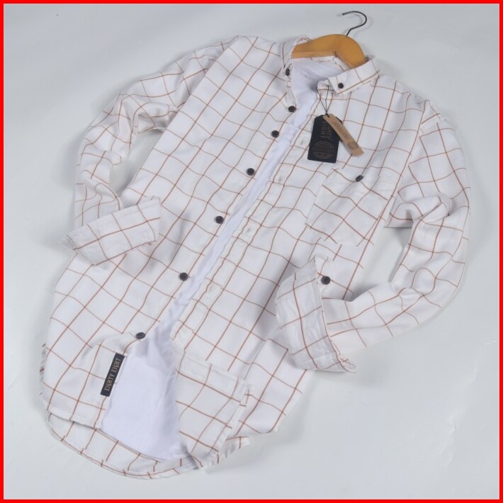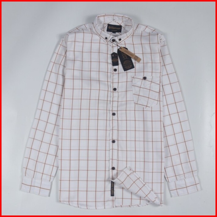 Brill Eighty Eight- Kemeja Flanel Panjang Premium White Mocca 88 L3657