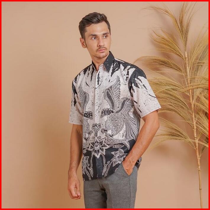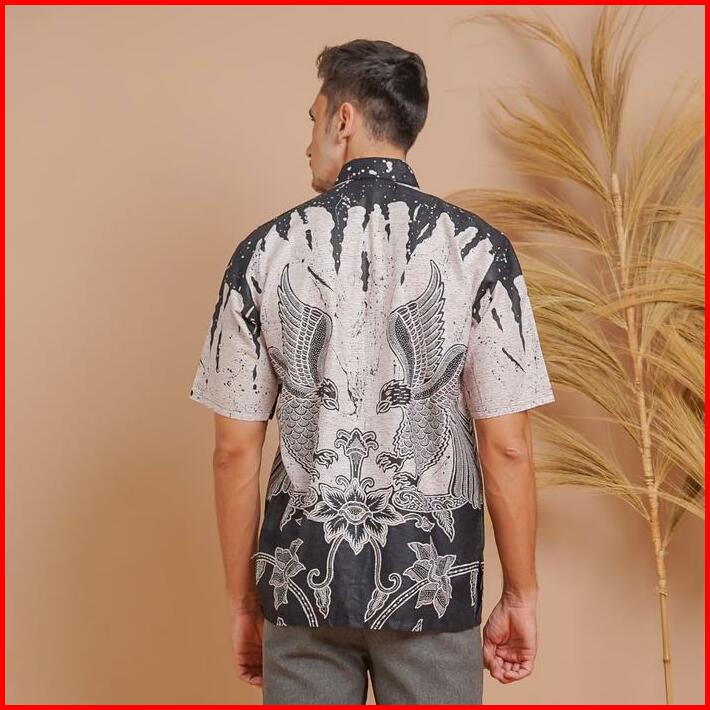 Batik Trusmi Hem Kemeja Pria Lengan Pendek Motif Mega Mendung Elang Hitam Dng Untuk Kerja Baju Panjang Katun Seragam Kan