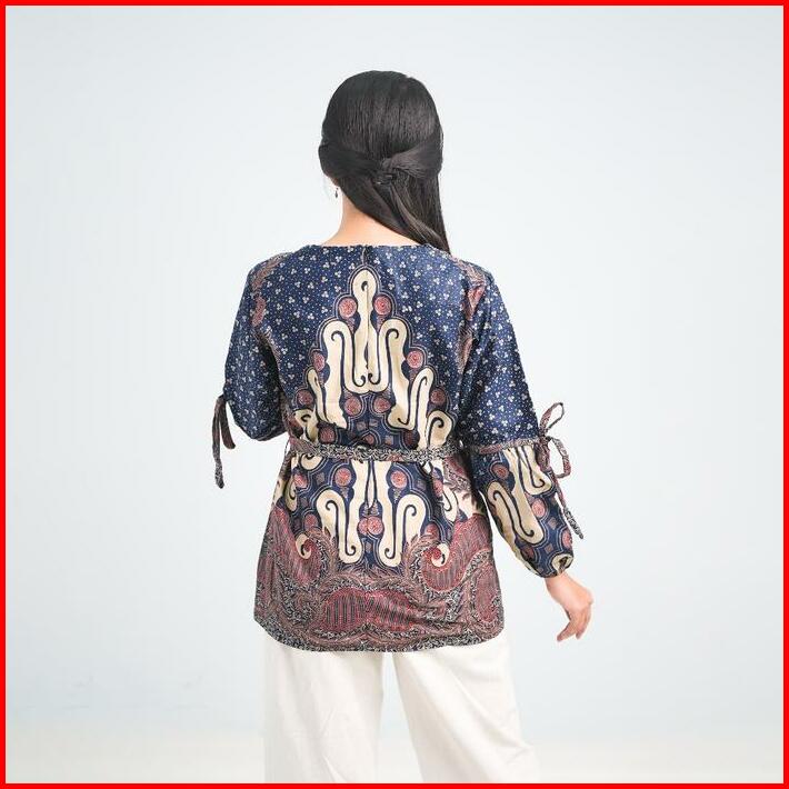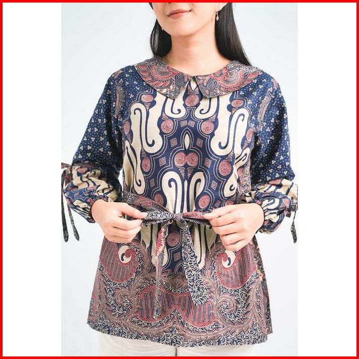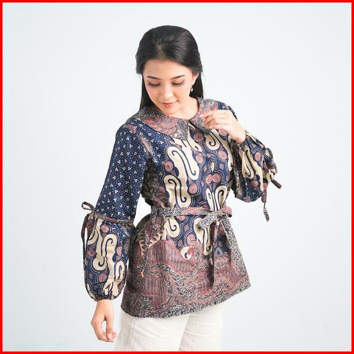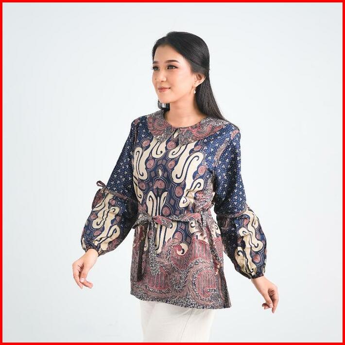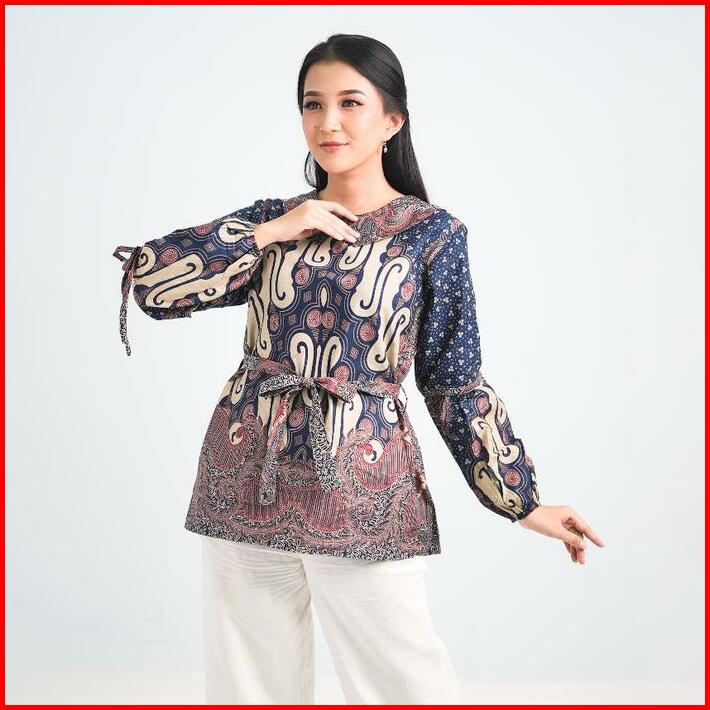 Batik Trusmi Blouse Batik Atasan Wanita Motif Liris Kombinasi Satya Cocok Untuk Seragaman Baju Katun Panjang Kerja Kain