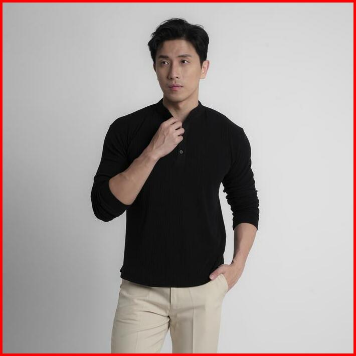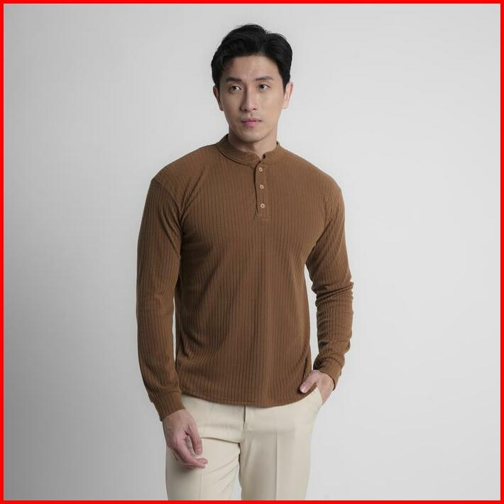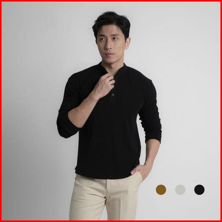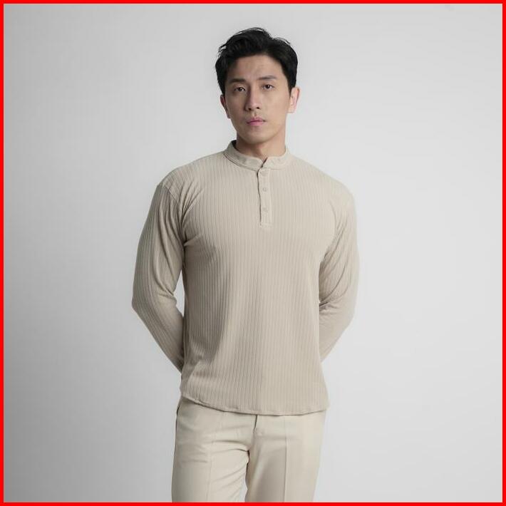 Cupachino Henley Men Shirt Collarless Kaos Pria Lengan Panjang