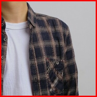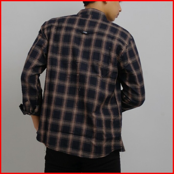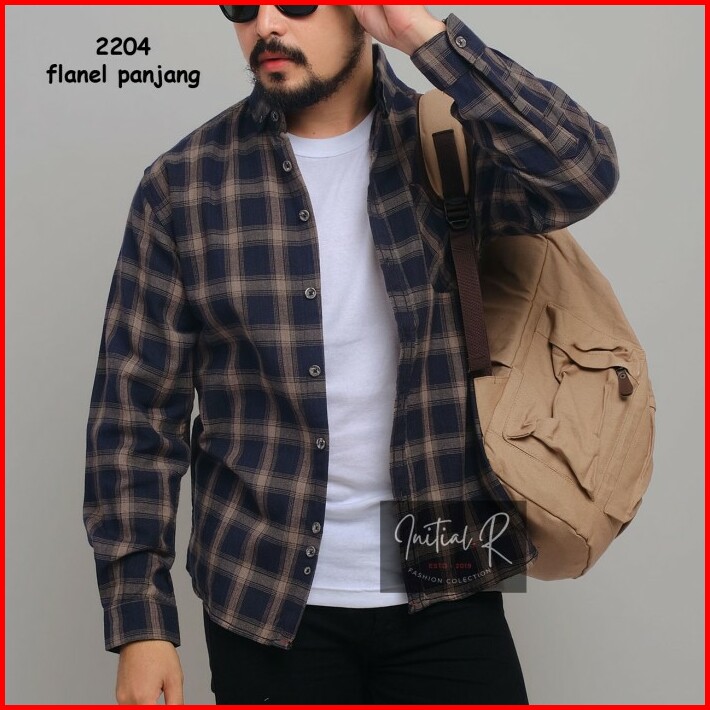 Kemeja Flanel Lengan Panjang Pria Casual Navy