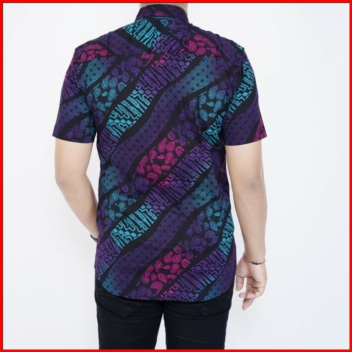 Kemeja Batik Slim Fit Lengan Pendek Cotton Stretch Batik Pria Salur