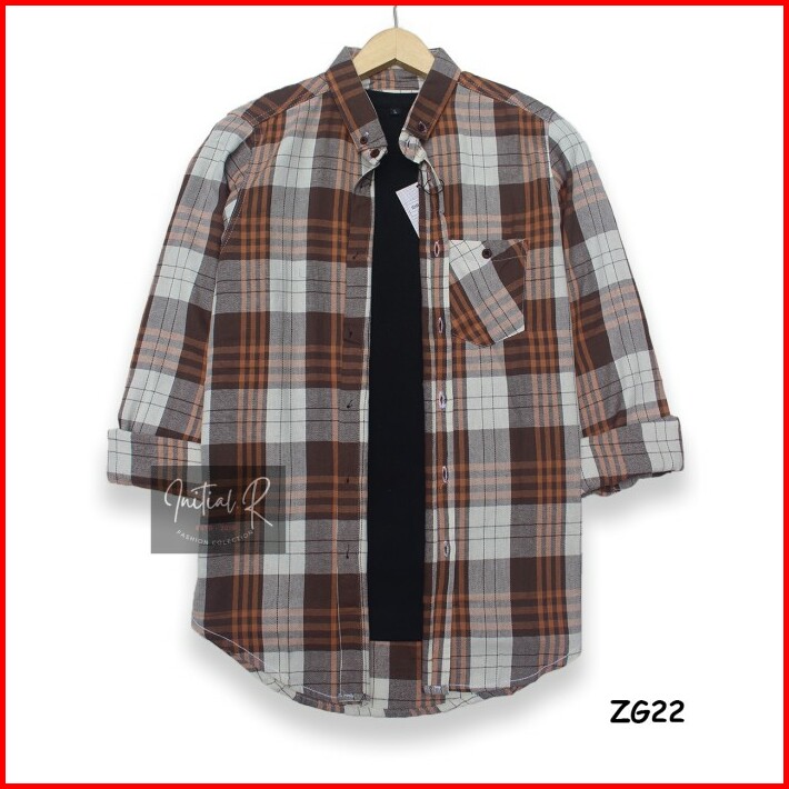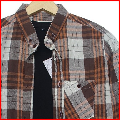 Kemeja Flanel Lengan Panjang Kemeja Pria Kemeja Casual Brown