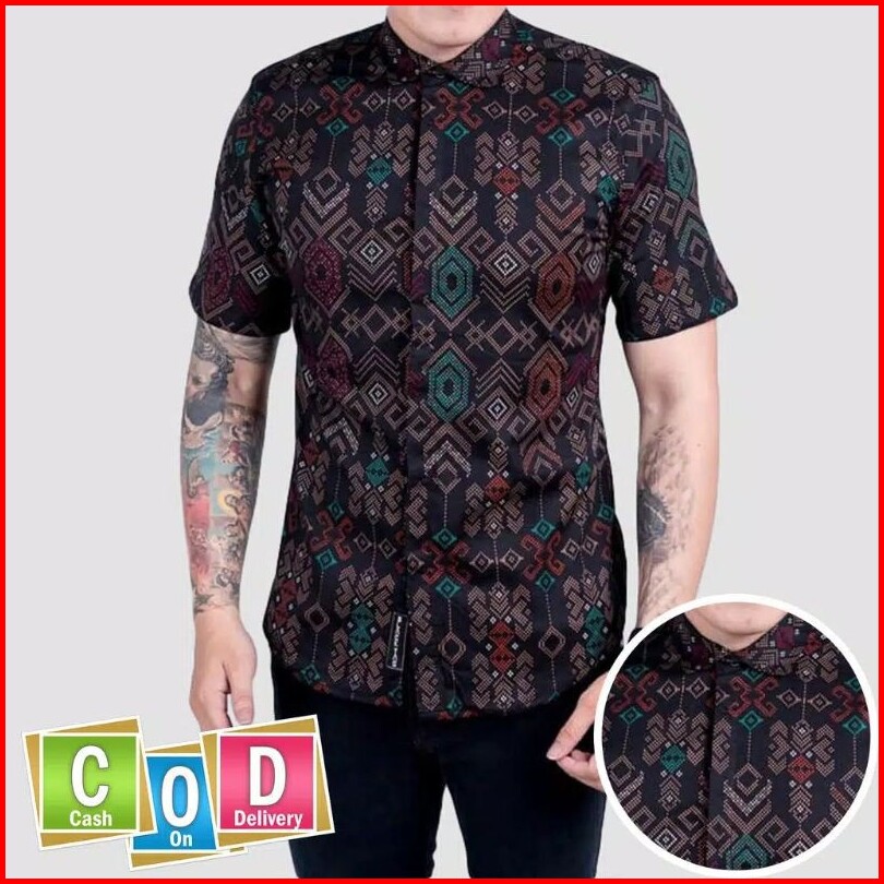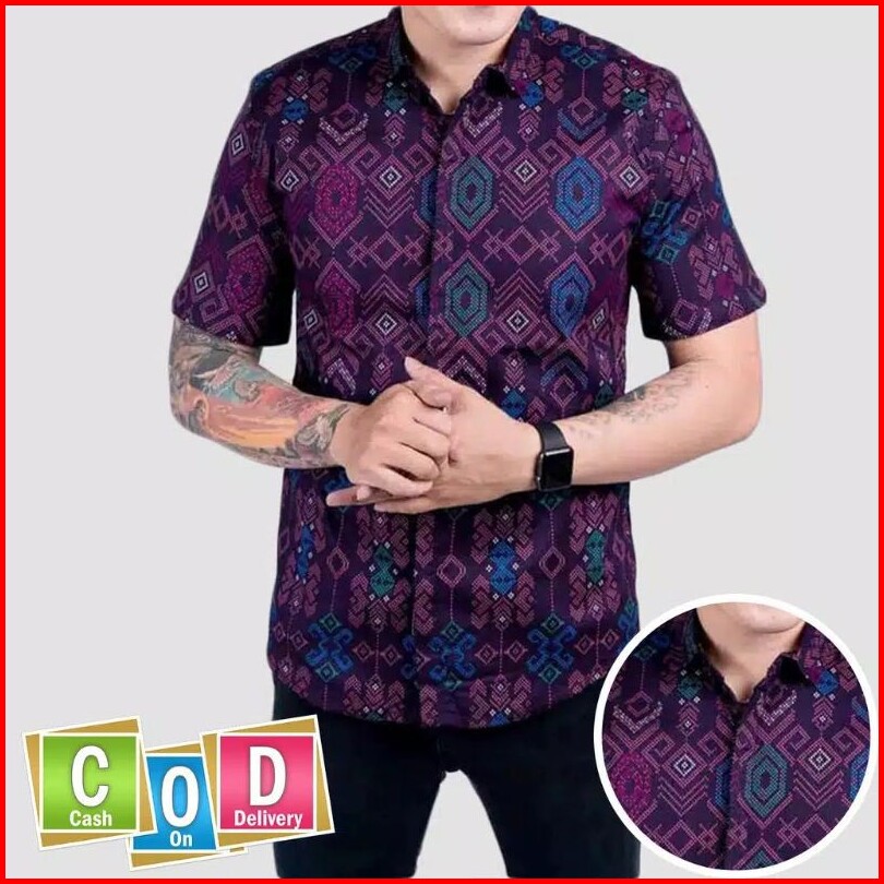 Ready Jumbo Kemeja Batik Pria Songket Lengan Pendek Batik Pendek Batik Songket