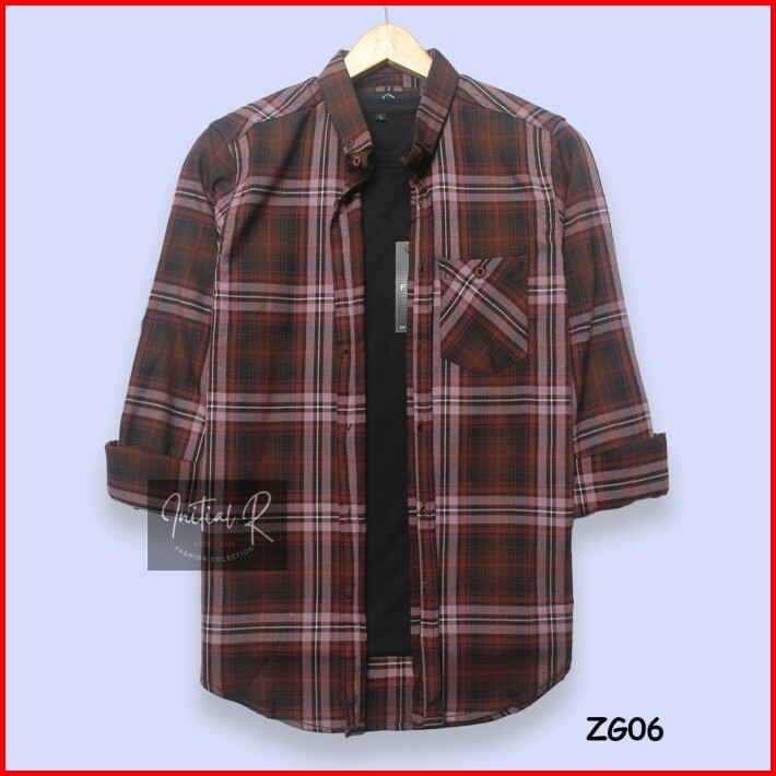 Kemeja Flanel Lengan Panjang Kemeja Pria Flanel Premium Merah Kotak