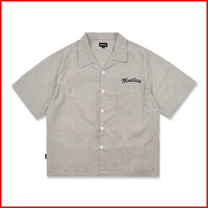 Madless Kemeja Lengan Pendek Stripe Boxy Crop Stripe Mocha