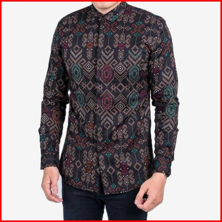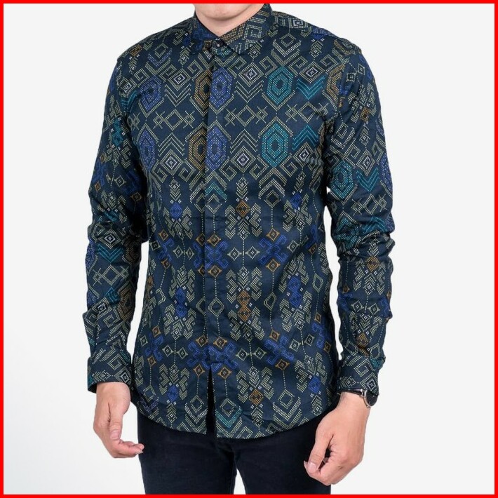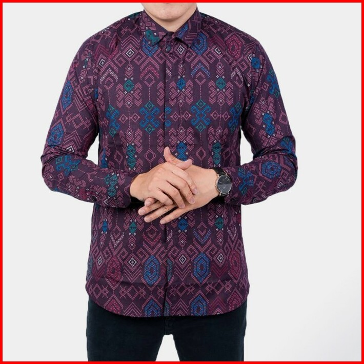Kemeja Batik Pria Slim Fit Lengan Panjang Kemeja Pria Cotton Stretch