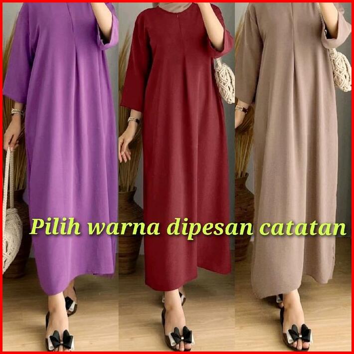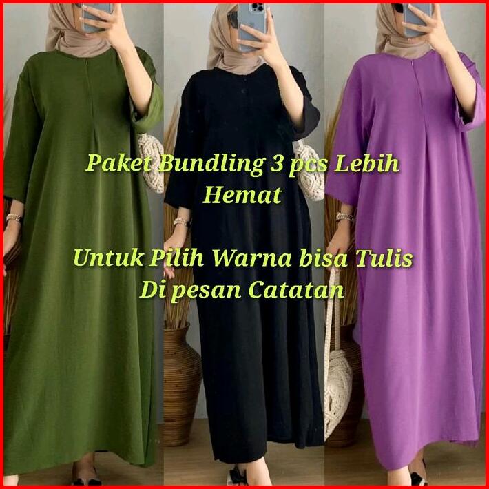 Paket Hemat 3 Pcs Daster Crinkel Lengan 3 5 Gamis Busui Airflow Crinkle Ibu Muslim Wanita