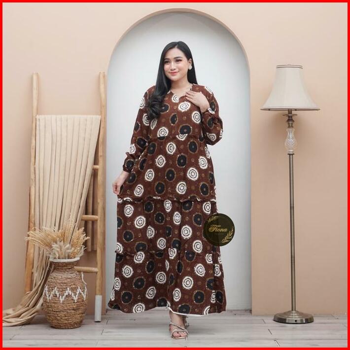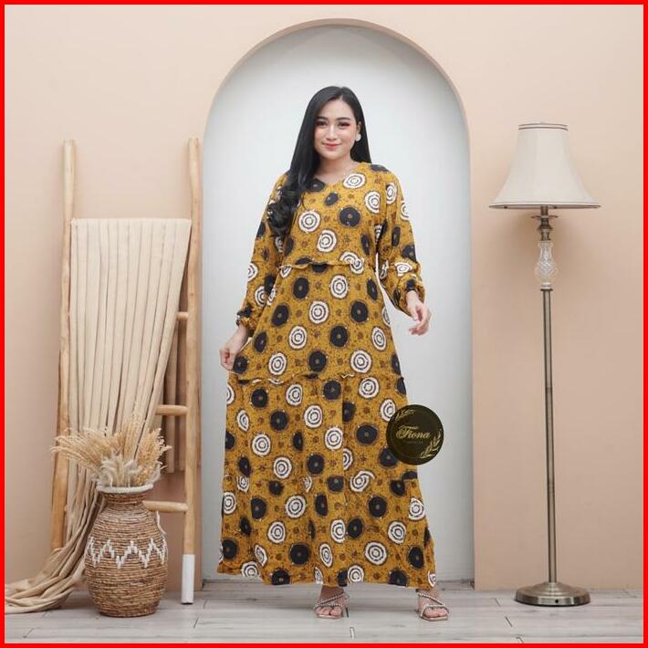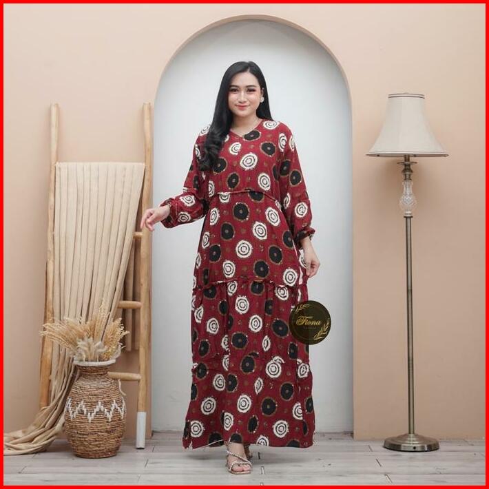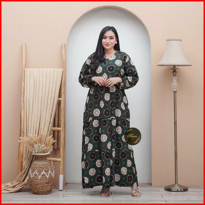 Gamis Hanna Rayon Premium Tebal Busui Lengan Panjang Motif Terbaru Cap Polka Dot