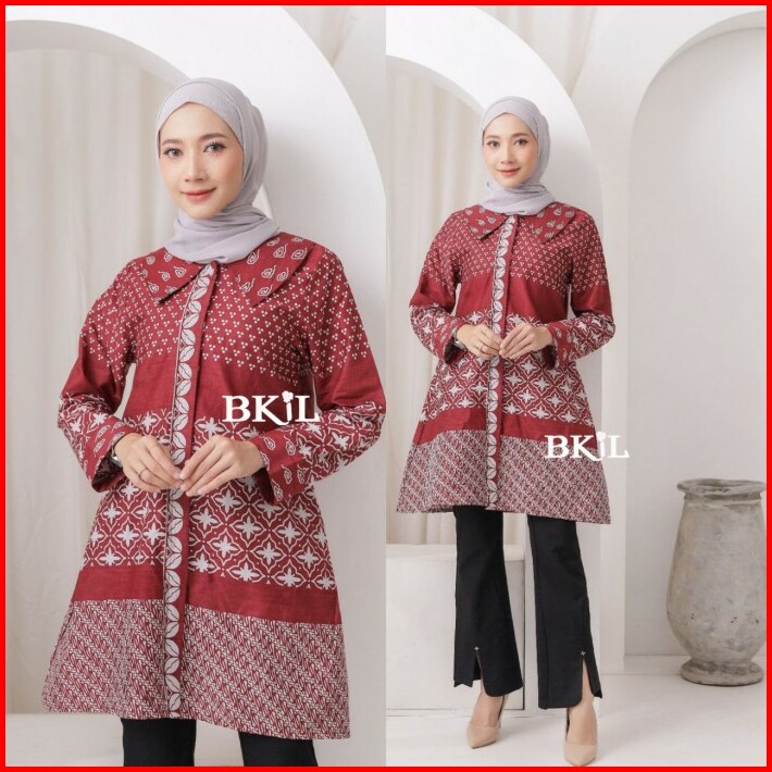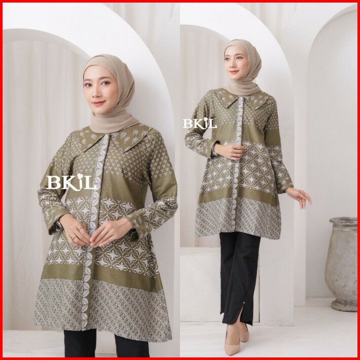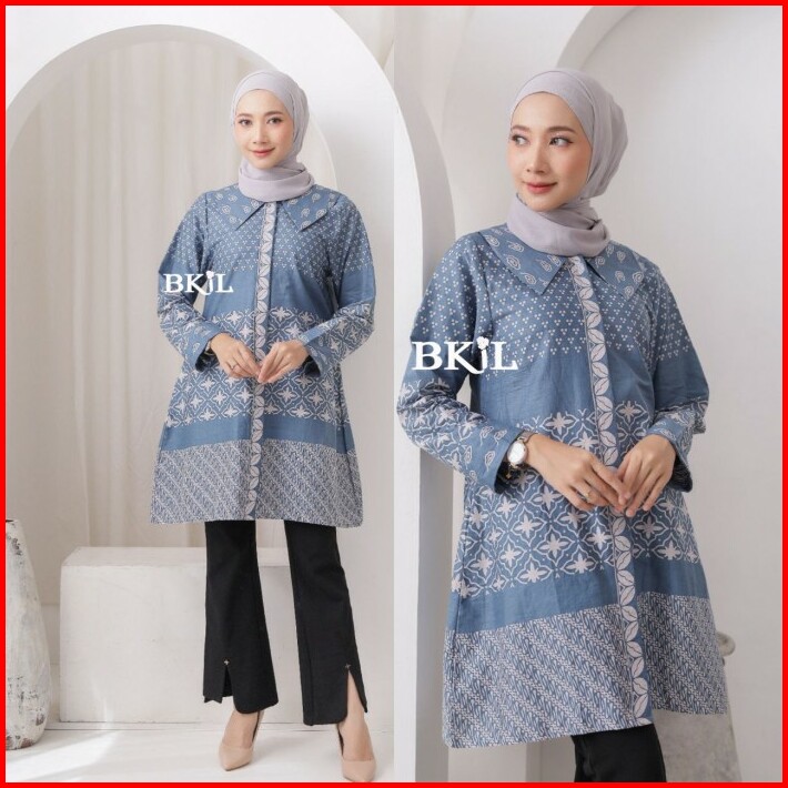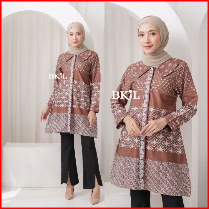 Baju Atasan Wanita Tunik Batik Katun Halus Motif Terbaru Tali Samping