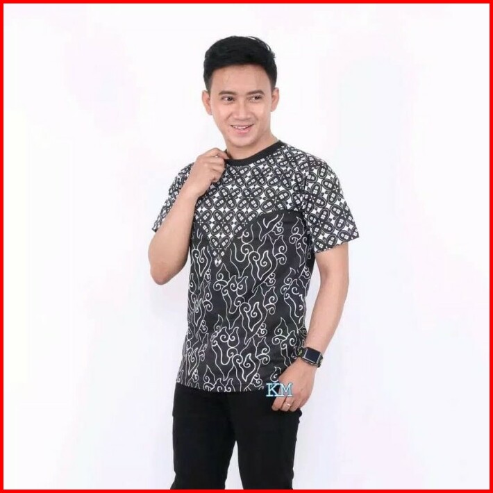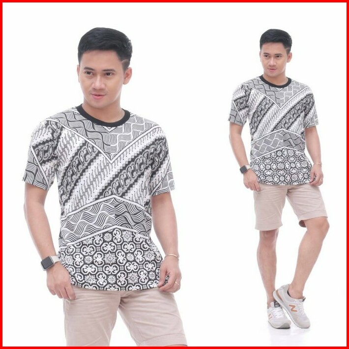 Kaos Pria Batik Monokrom Katun Hd Halus Berkualitas