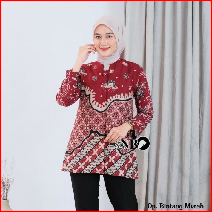Kemeja Batik Wanita Lengan Panjang Blouse Batik Formal Batik Tulis