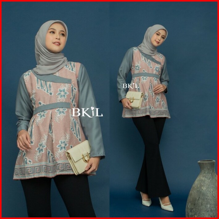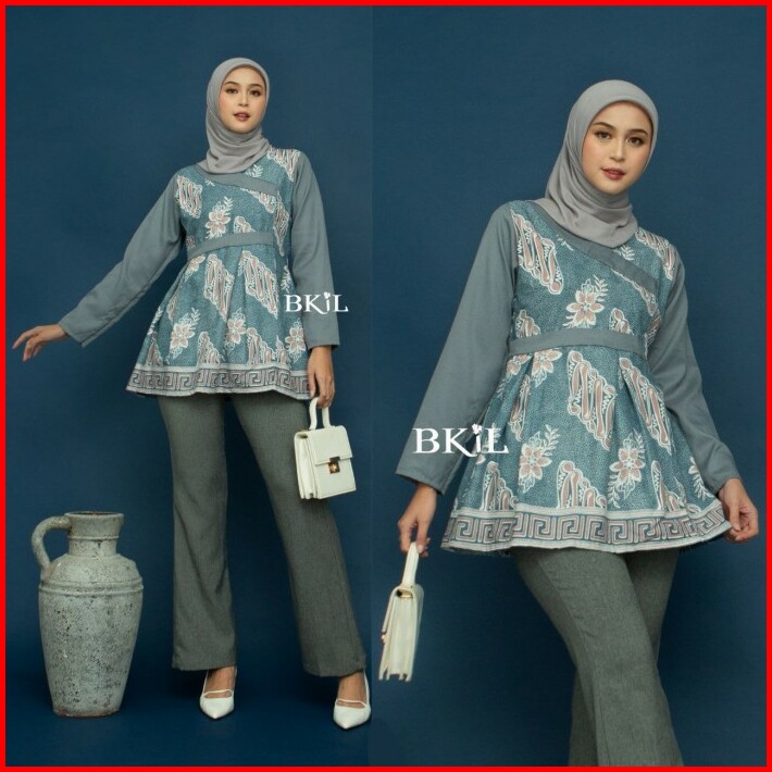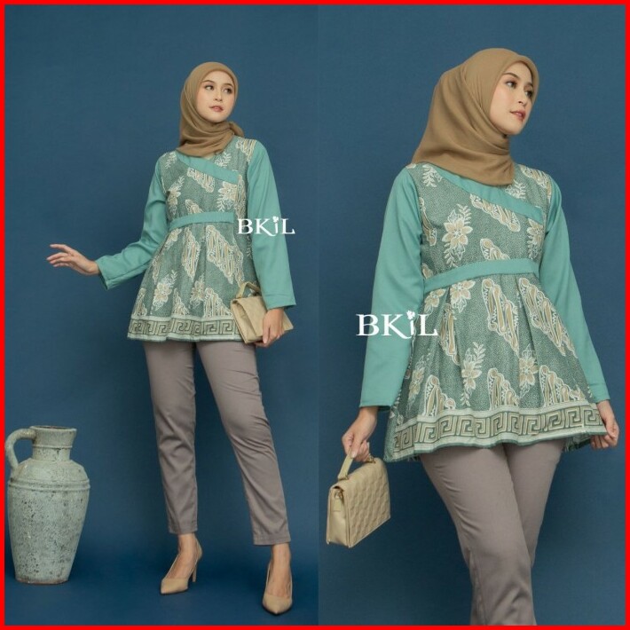 Atasan Batik Wanita Modern Lengan Panjang Blouse Kombinasi Eksklusif