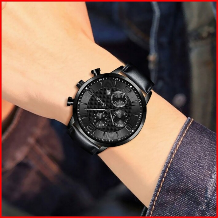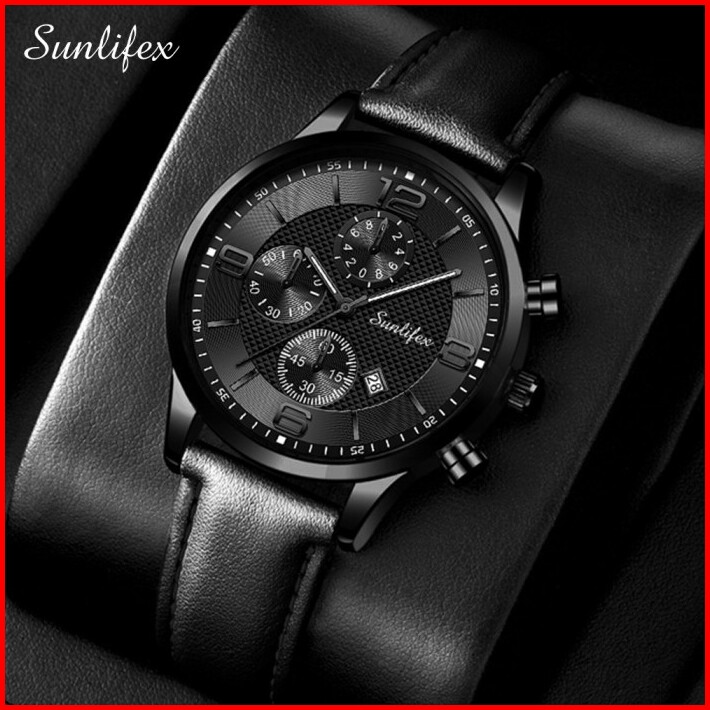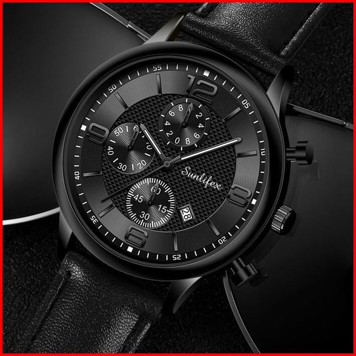 Sunlifex Jam Tangan Pria Original Tali Kulit Kalender Jam Tangan Cowok