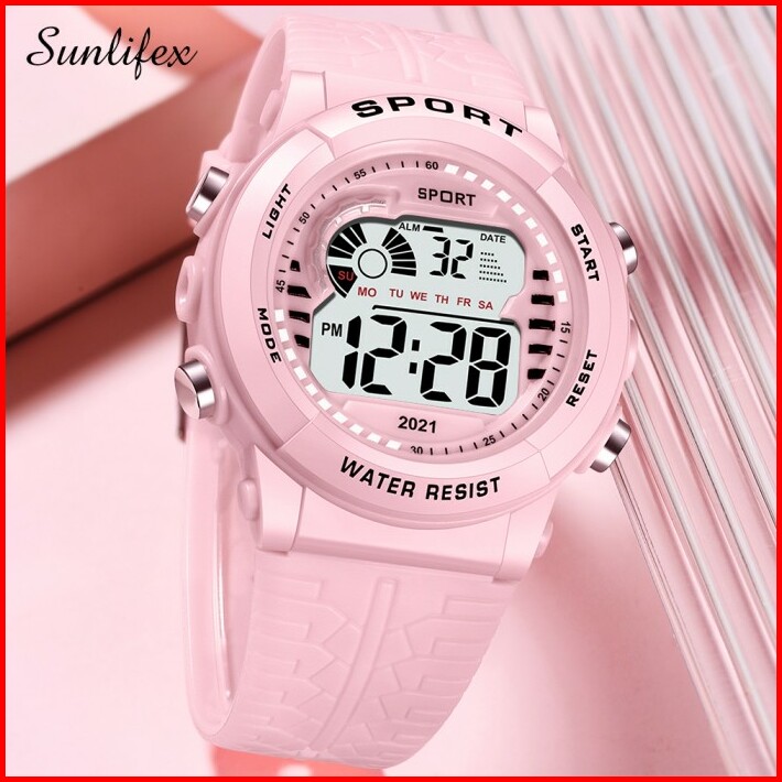 Sunlifex Jam Tangan Wanita Digital Bercahaya Sports Jam Tangan Cewek