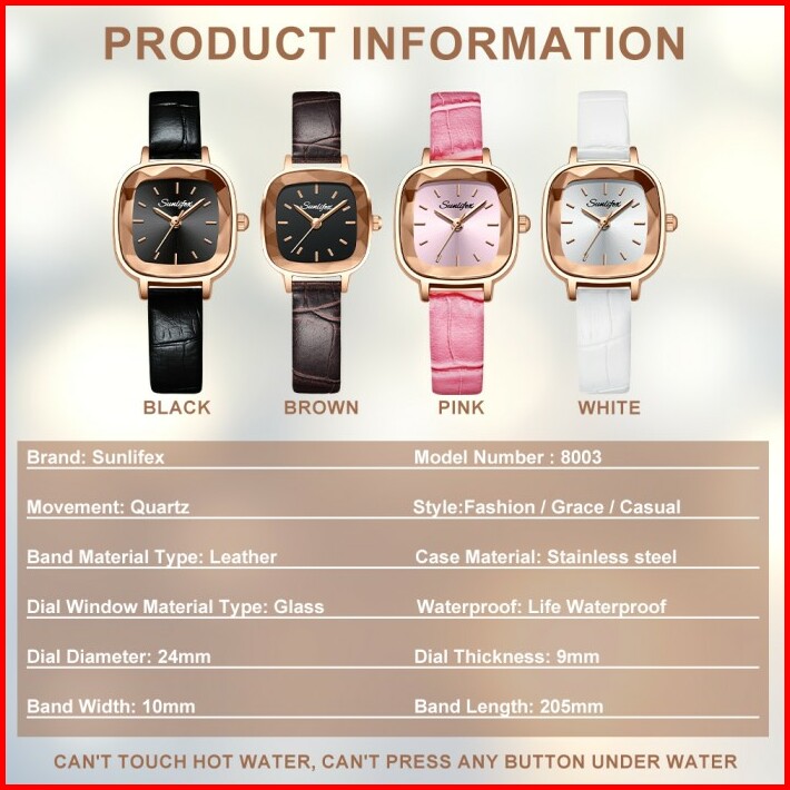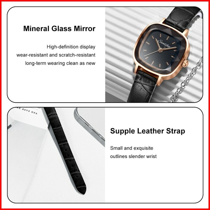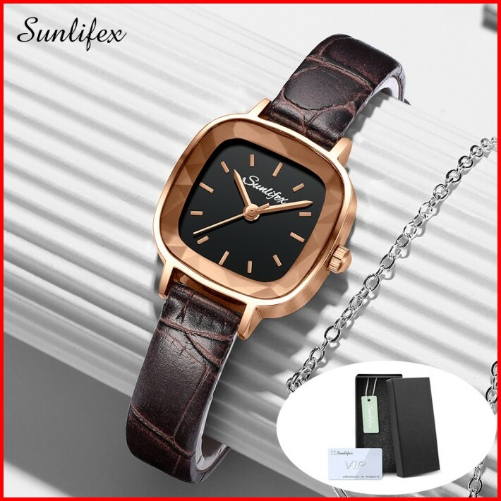 Sunlifex Jam Tangan Wanita Original Persegi Anggun Tali Kulit Jam