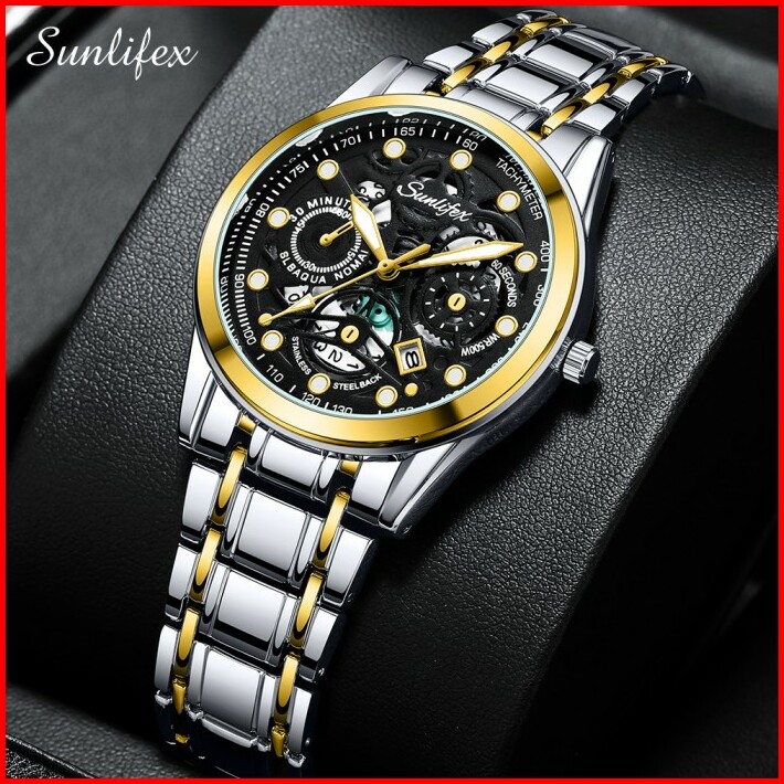Sunlifex Jam Tangan Pria Luminous Calendar Tali Stainless Steel Mewah