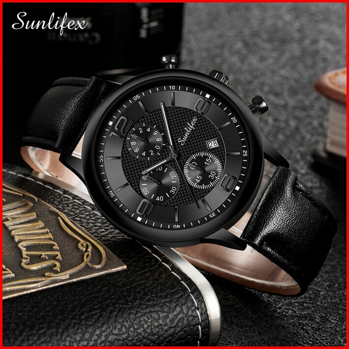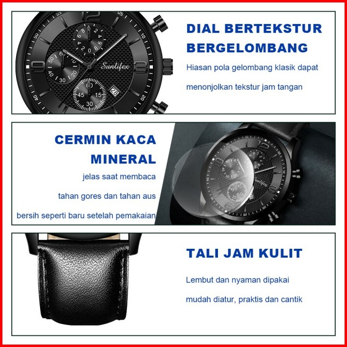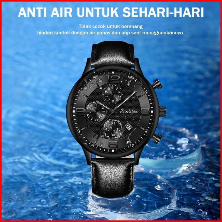 Sunlifex Jam Tangan Pria Kalender Kuarsa Bisnis Klasik Anti Air Jam