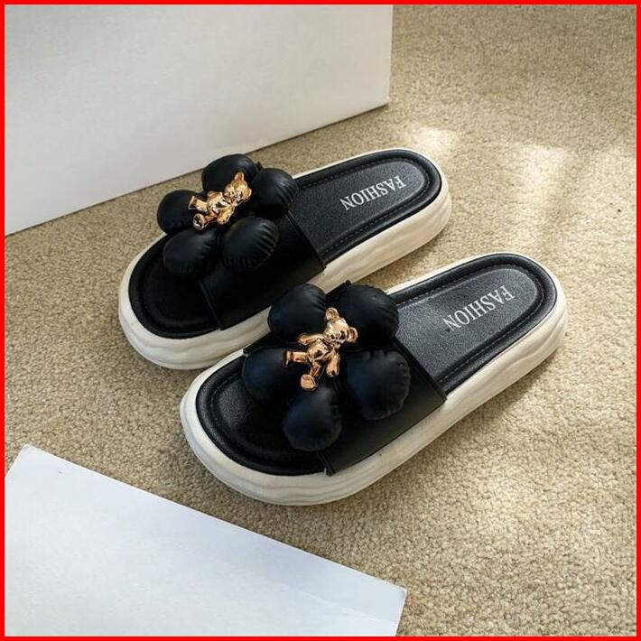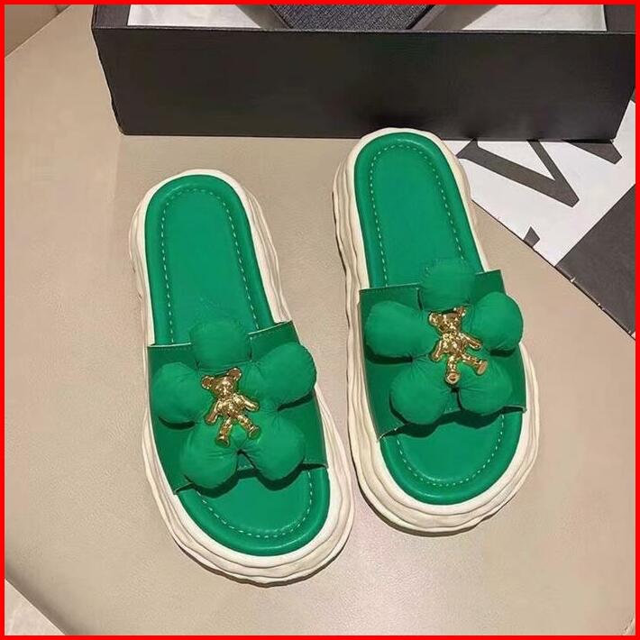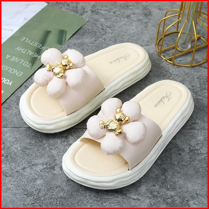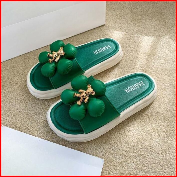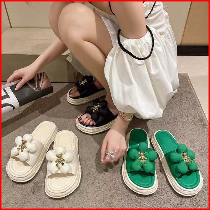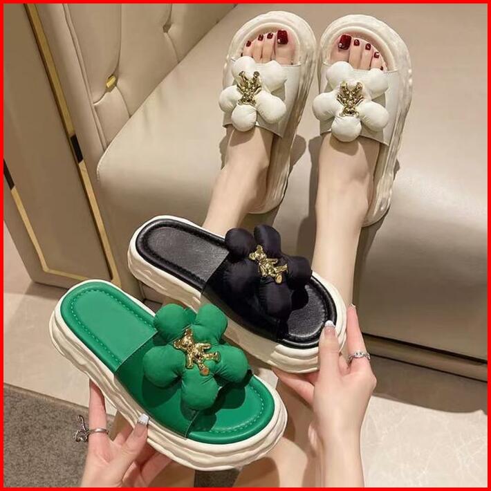 Okaido Sandal Wanita Selop Model Bunga Beruang Gaya Fashion Korea Style Sendal Karet Eva Lembut Unik Dan Mewah